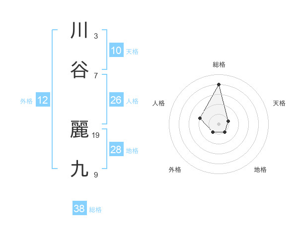 川谷 麗九さんの総格は38画の4点!