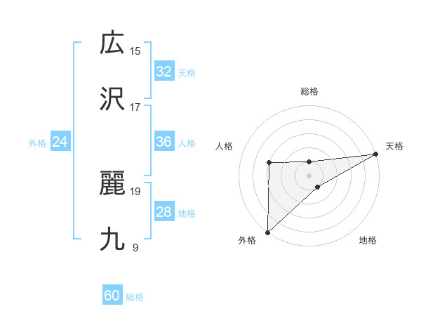 広沢 麗九さんの総格は60画の1点!
