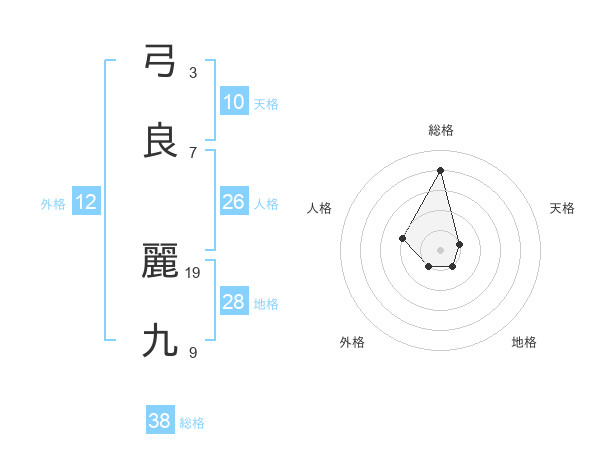 弓良 麗九さんを姓名の画数から五運を鑑定