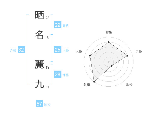 晒名 麗九さんを姓名の画数から五運を鑑定