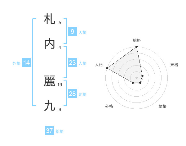札内 麗九さんの総格は37画の5点!