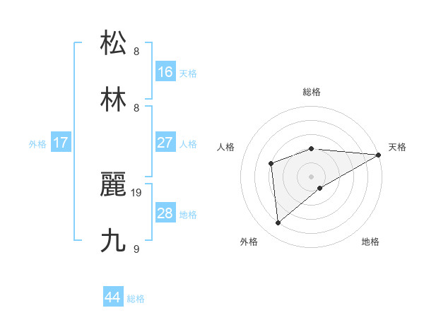 松林 麗九さんの天格は16画の5点!