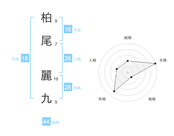 柏尾 麗九さんを姓名の画数から五運を鑑定