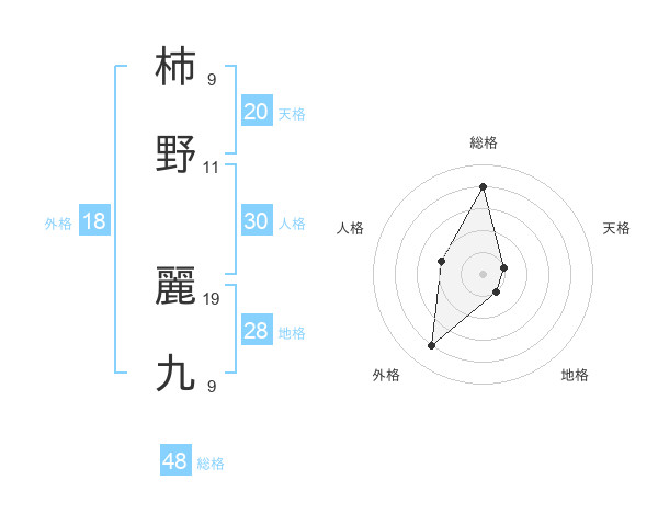 柿野 麗九さんを姓名の画数から五運を鑑定