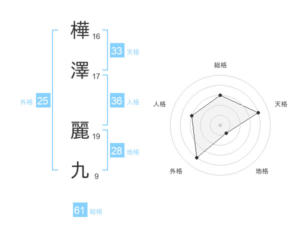 樺澤 麗九さんを姓名の画数から五運を鑑定