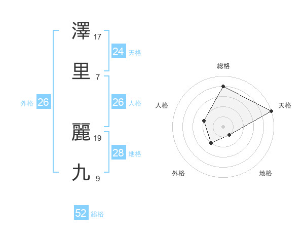 澤里 麗九さんを姓名の画数から五運を鑑定