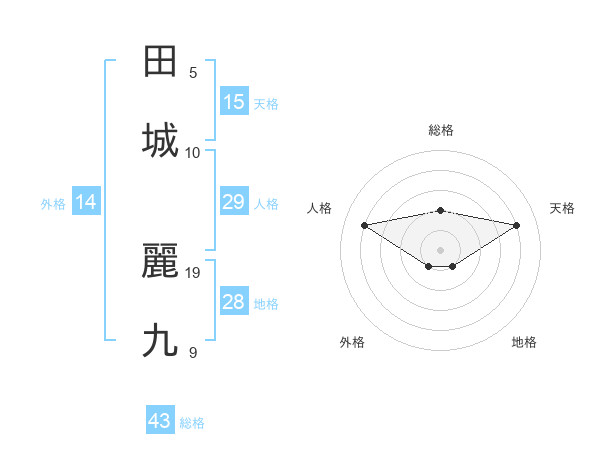 田城 麗九さんの天格は15画の4点!