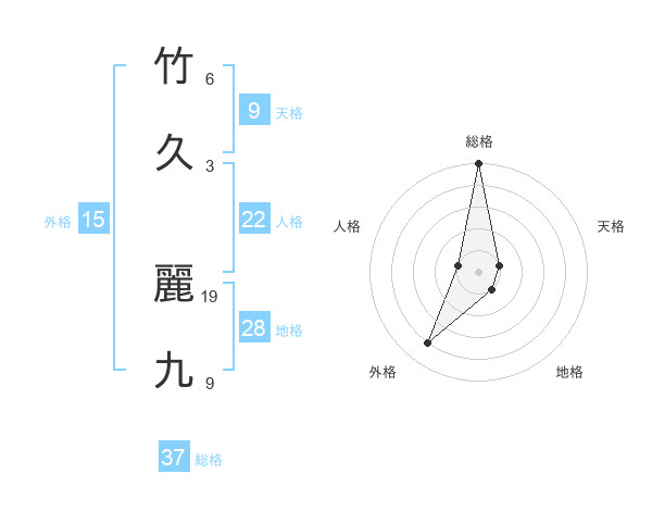 竹久 麗九さんの総格は37画の5点!