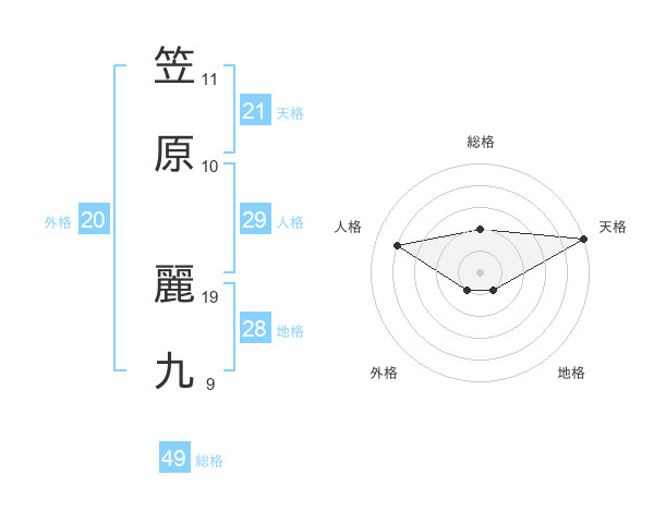 笠原 麗九さんを姓名の画数から五運を鑑定
