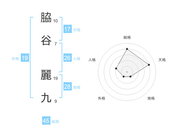 脇谷 麗九さんの総格は45画の4点!
