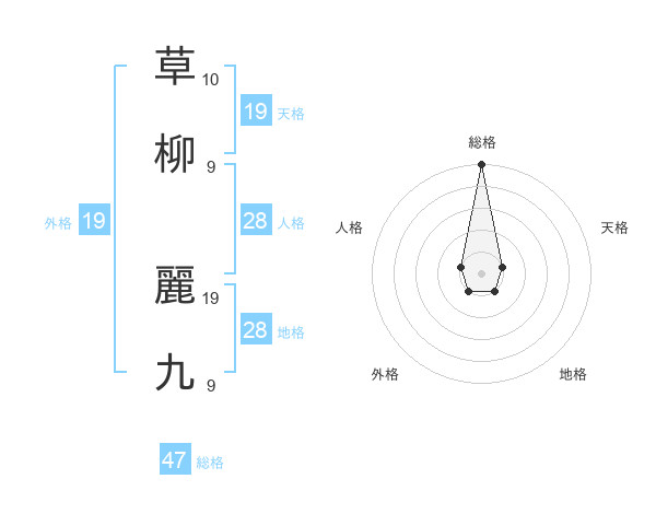 草柳 麗九さんの総格は47画の5点!