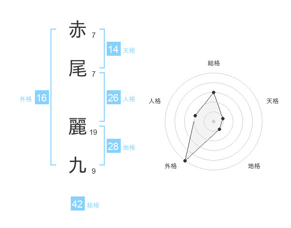 赤尾 麗九さんの総格は42画の3点!