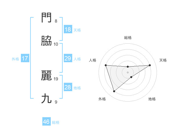 門脇 麗九さんを姓名の画数から五運を鑑定