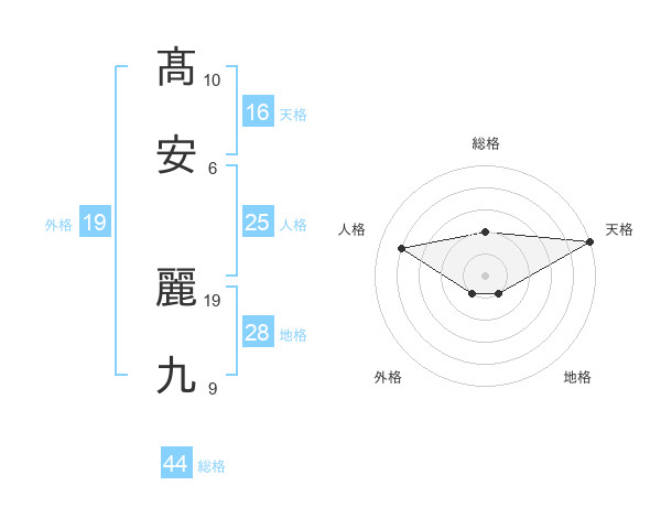 髙安 麗九さんを姓名の画数から五運を鑑定