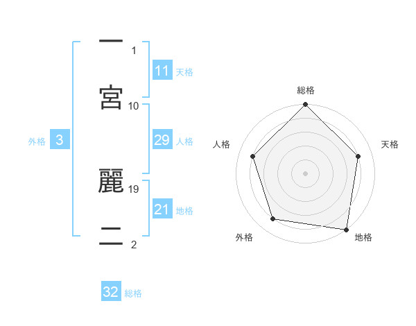一宮 麗二さんを姓名の画数から五運を鑑定