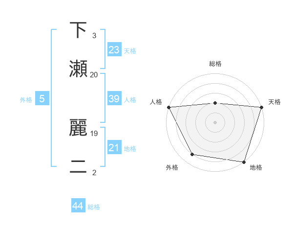 下瀬 麗二さんを姓名の画数から五運を鑑定