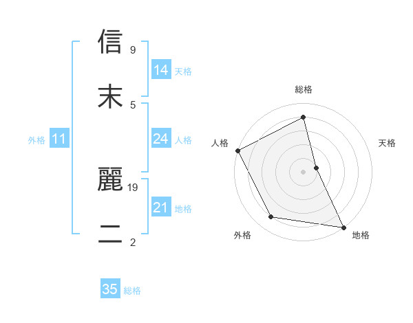 信末 麗二さんの総格は35画の4点!