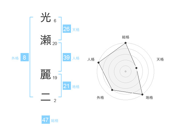 光瀬 麗二さんの総格は47画の5点!