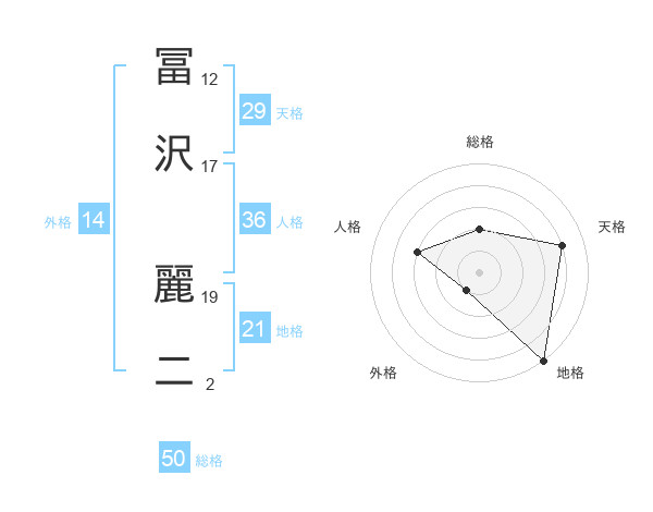 冨沢 麗二さんの総格は50画の2点!