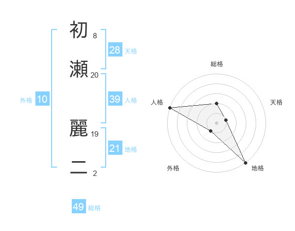 初瀬 麗二さんを姓名の画数から五運を鑑定