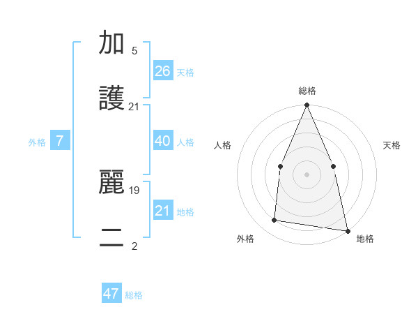 加護 麗二さんの総格は47画の5点!
