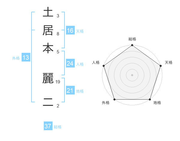 土居本 麗二さんの総格は37画の5点!