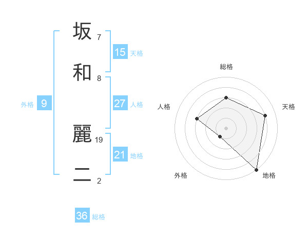 坂和 麗二さんの地格は21画の5点!
