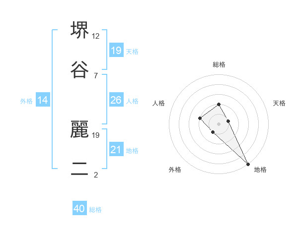 堺谷 麗二さんを姓名の画数から五運を鑑定