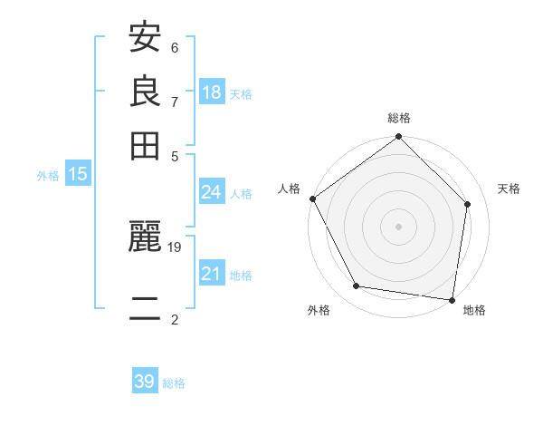 安良田 麗二さんの総格は39画の5点!