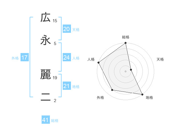 広永 麗二さんの外格は17画の4点!