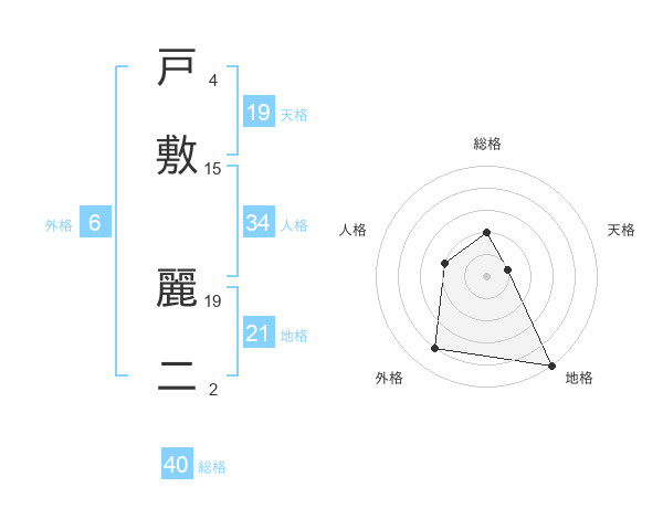 戸敷 麗二さんの地格は21画の5点!