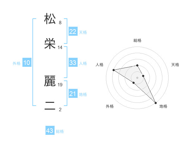 松栄 麗二さんの総格は43画の2点!