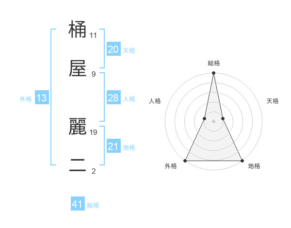 桶屋 麗二さんを姓名の画数から五運を鑑定