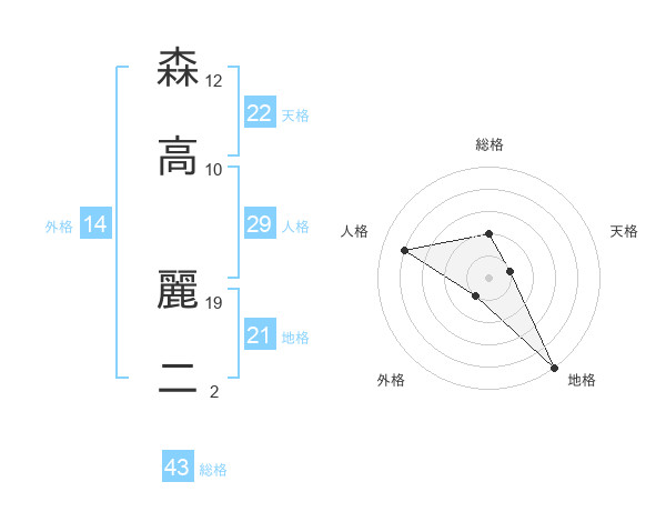 森高 麗二さんの総格は43画の2点!