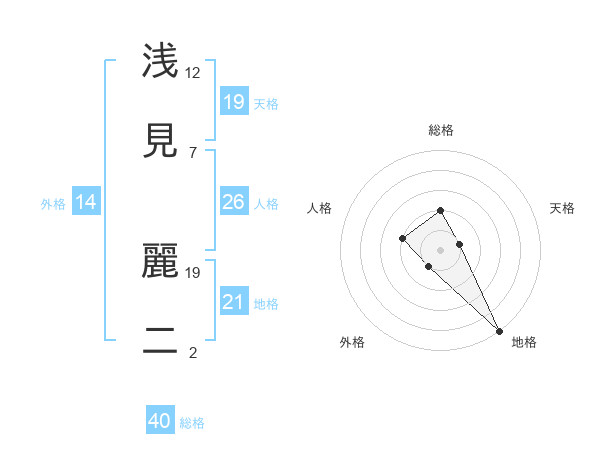浅見 麗二さんを姓名の画数から五運を鑑定