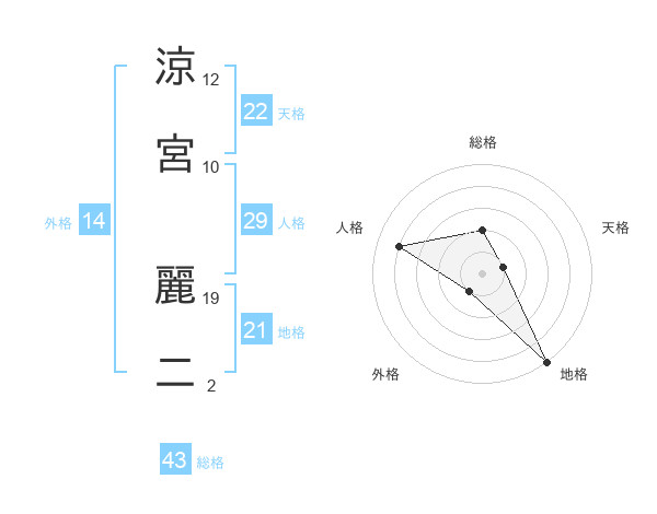 涼宮 麗二さんを姓名の画数から五運を鑑定