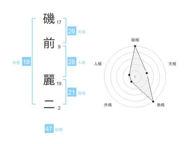 磯前 麗二さんの総格は47画の5点!