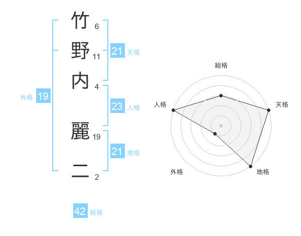 竹野内 麗二さんを姓名の画数から五運を鑑定