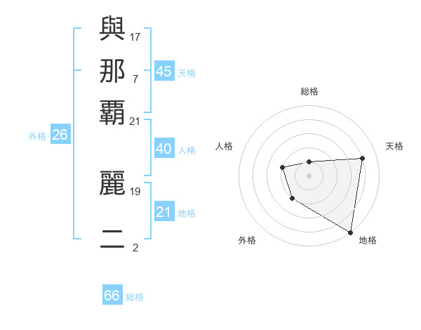 與那覇 麗二さんの天格は45画の4点!