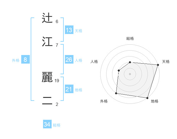 辻江 麗二さんの総格は34画の2点!