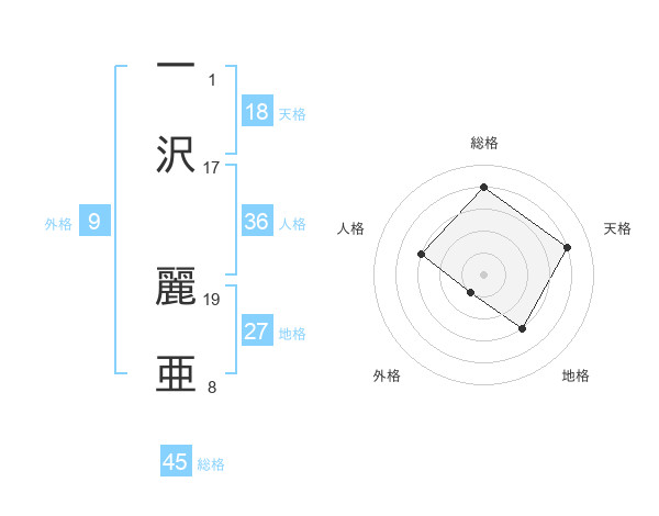 一沢 麗亜さんを姓名の画数から五運を鑑定