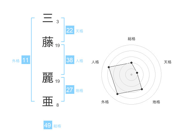 三藤 麗亜さんの総格は49画の2点!