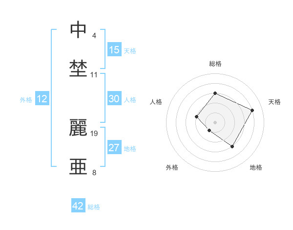 中埜 麗亜さんの天格は15画の4点!