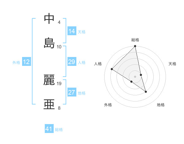 中島 麗亜さんを姓名の画数から五運を鑑定