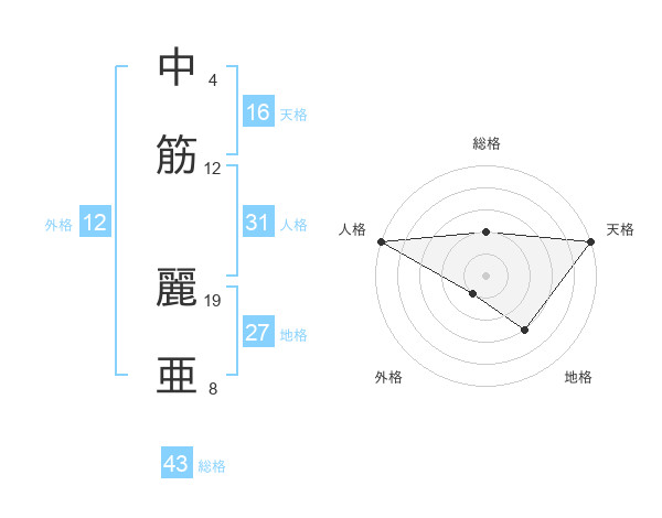 中筋 麗亜さんの天格は16画の5点!