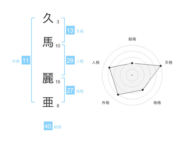 久馬 麗亜さんの総格は40画の2点!
