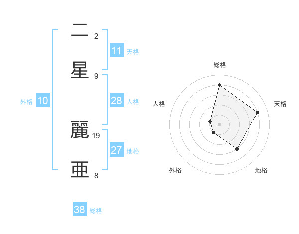 二星 麗亜さんを姓名の画数から五運を鑑定