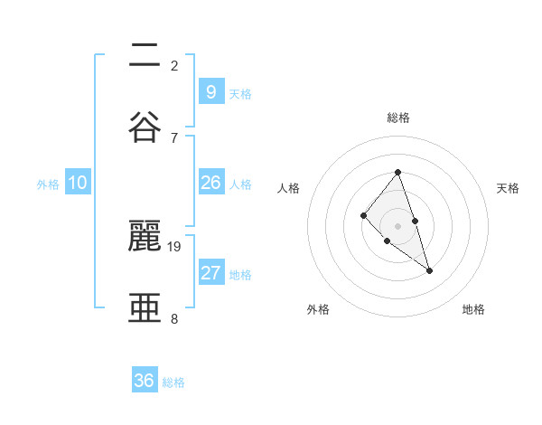 二谷 麗亜さんの地格は27画の3点!