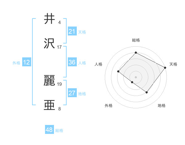 井沢 麗亜さんを姓名の画数から五運を鑑定