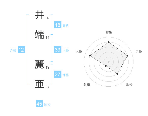 井端 麗亜さんを姓名の画数から五運を鑑定